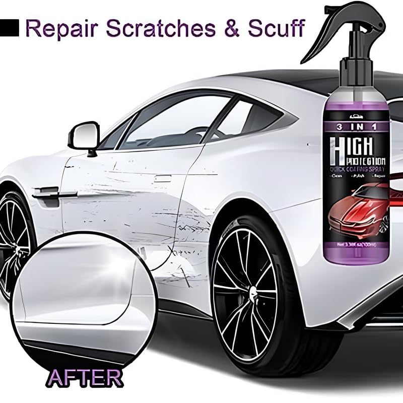 • 3-in-1 Quick Car Coating Spray: The easiest, fastest, and most efficient way to clean, restore, and polish cars with our 3-in-1 Quick Protection Spray. It will give you a waterless wash, create a clean look and make your car shine as before.